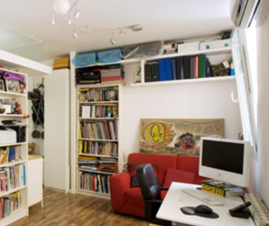 La casa, situada a pocos metros de la Pza. España de Madrid, era un piso interior en una tercera planta de un edificio antiguo. La luz llegaba a la vivienda a través de 2 patios; uno mas grande, al que daba el salón y el otro menor, patio de luces que iluminaba cocina y uno de los dormitorios.